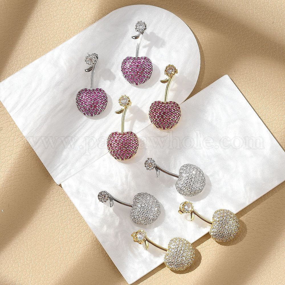 Серьги-гвоздики из вишневой латуни с микропаве из кубических цирконий, стойки покрытие, долговечный, без свинца и без кадмия