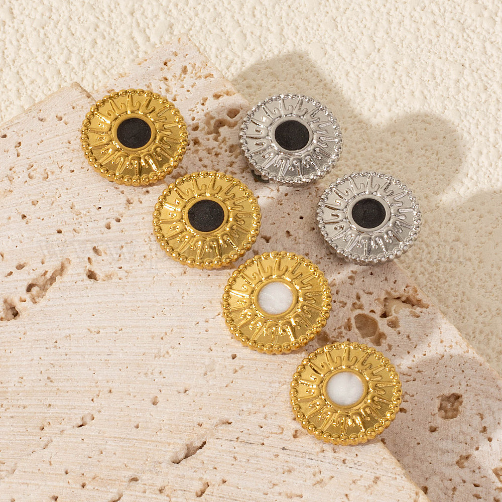 Геометрические 304 плоские круглые серьги-гвоздики из нержавеющей стали с солнцем