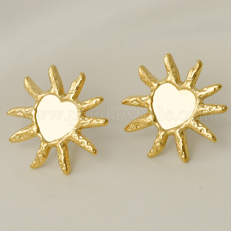 Модные 304 серьги-гвоздики в форме сердца неправильной формы из нержавеющей стали с солнцем