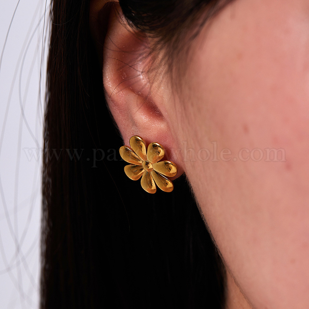 Модные 304 серьги-гвоздики в форме цветка из нержавеющей стали