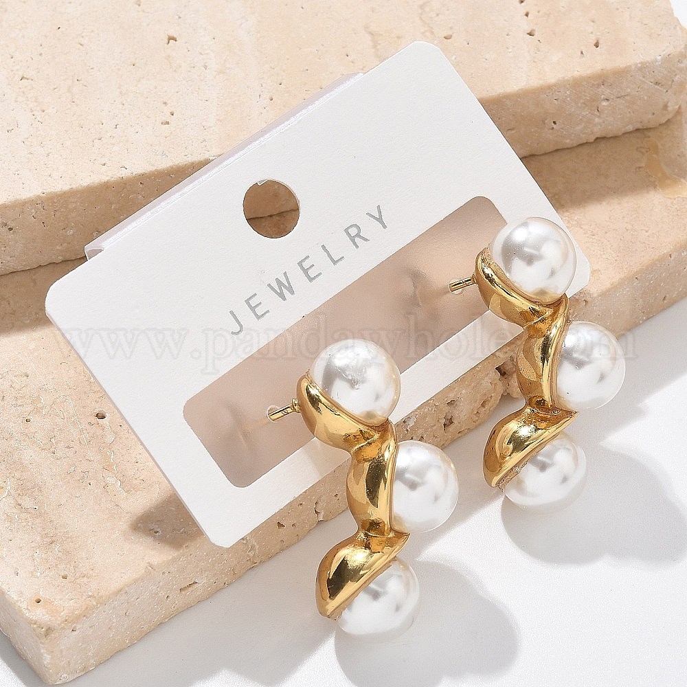 304 стальные круглые серьги стержня из нержавеющей, с пластиковой жемчужины, ионное покрытие (ip)