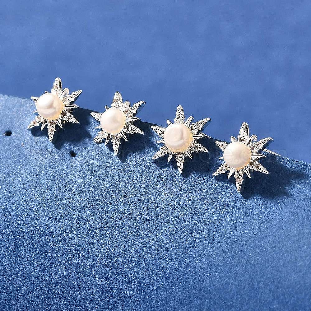 Натуральные жемчужные ушные шпильки, с латунным микропаве из прозрачных кубических цирконий и 925 булавкой из стерлингового серебра, звезда