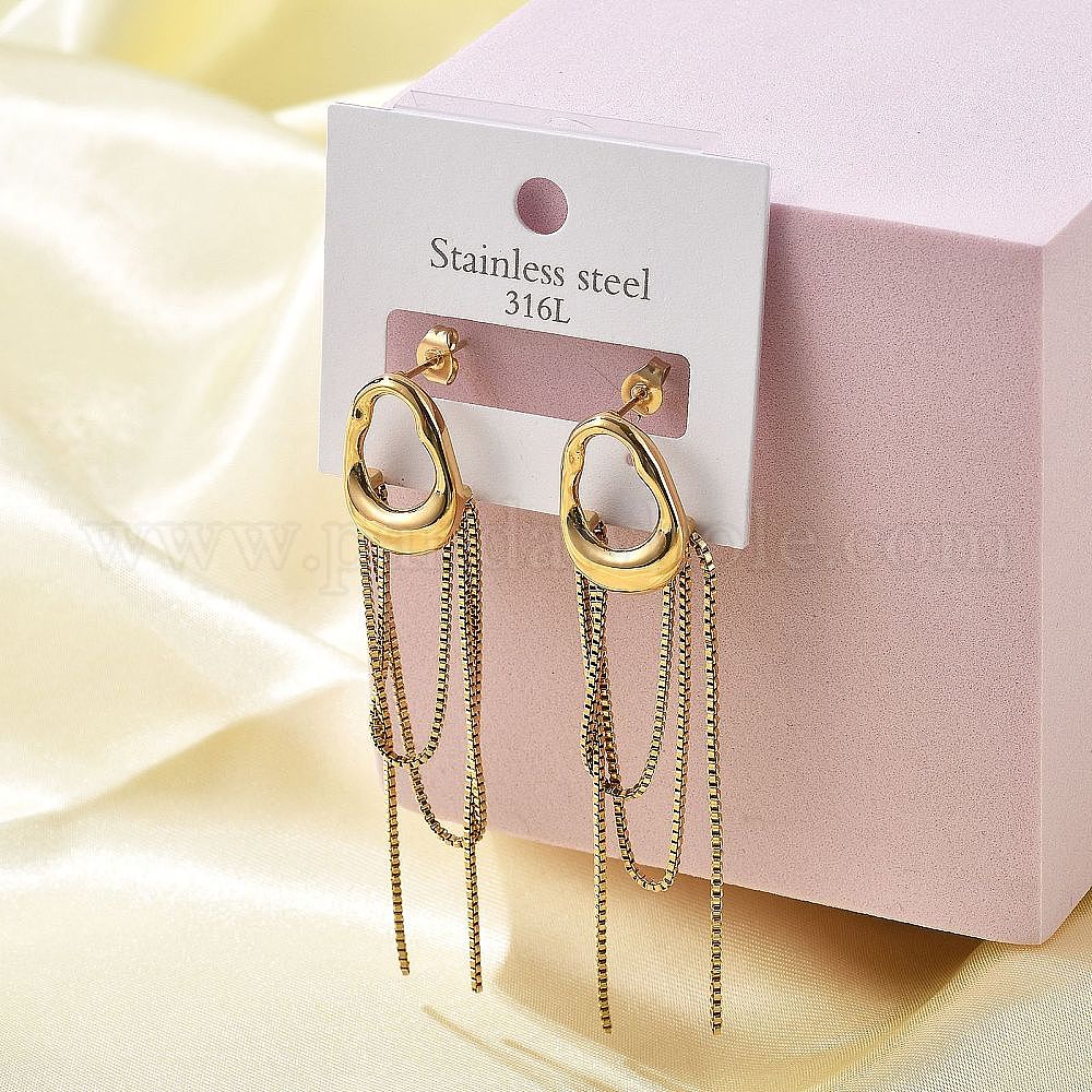 • Настоящее золото 18K 304 овальные серьги-гвоздики с кисточками из нержавеющей стали, реальный 18 k позолоченный, 74x14 мм