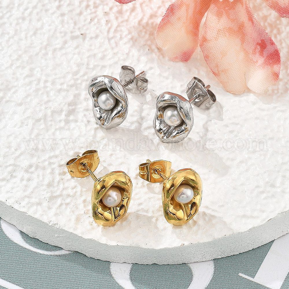 304 из нержавеющей стали серьги, с бисером пресноводного жемчуга, цветок, ионное покрытие (ip) (03169H)