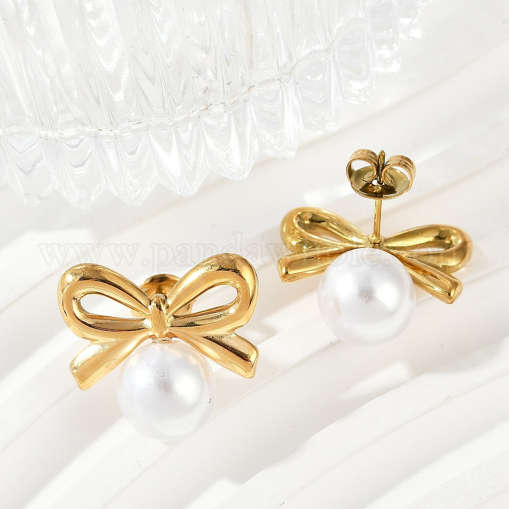 304 серьги-гвоздики из натуральной ракушки из нержавеющей стали, ионное покрытие (ip), bowknot & round