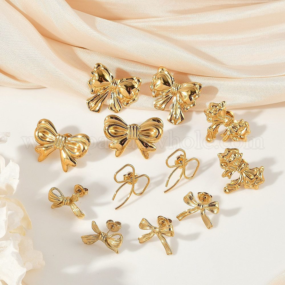 304 из нержавеющей стали серьги, ионное покрытие (ip), бантом