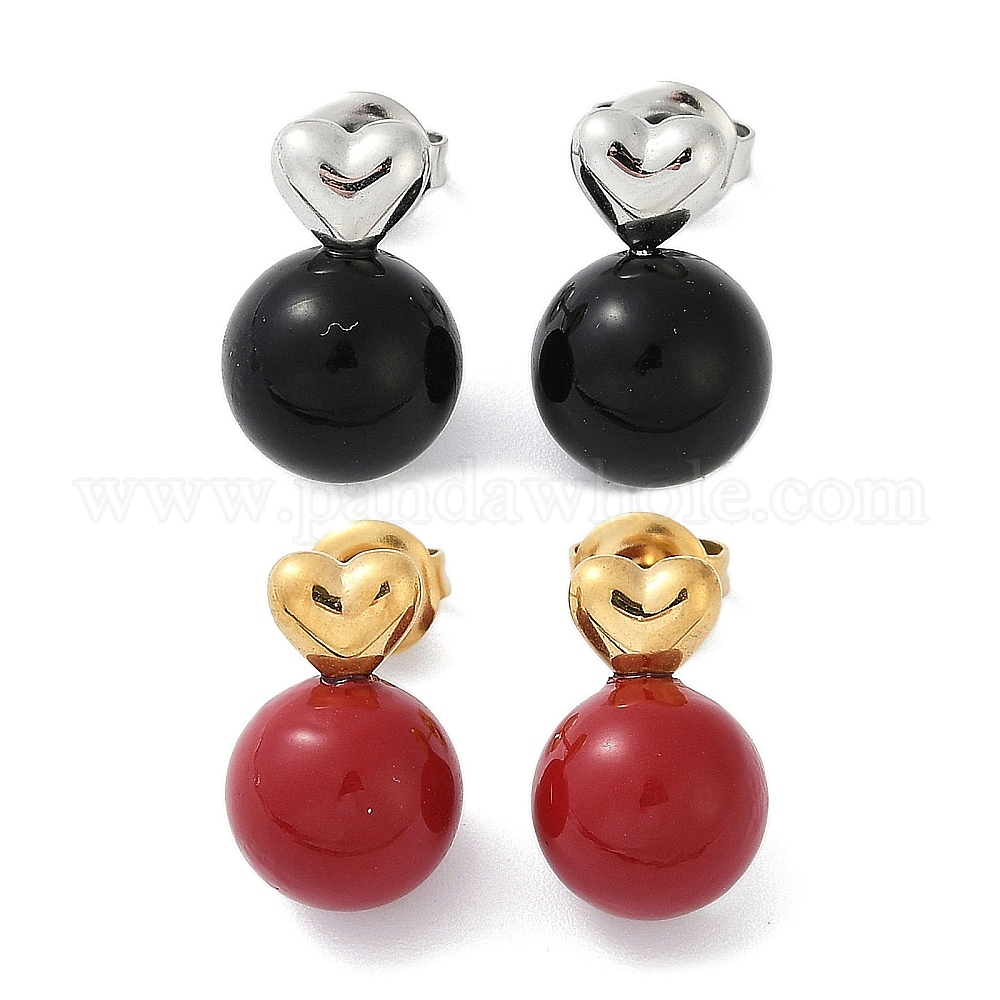 304 серьги из нержавеющей стали эмаль, ионное покрытие (ip), сердце и круглый