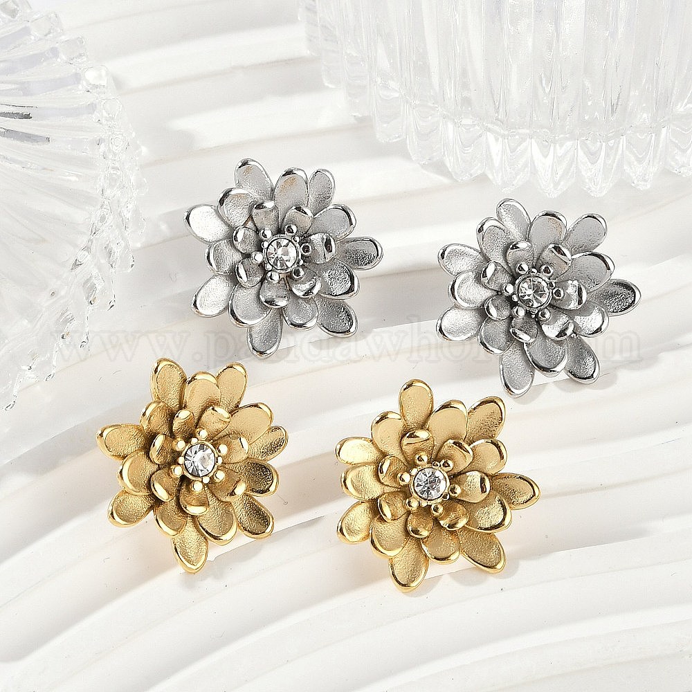 304 серьги-гвоздики из нержавеющей стали с кристаллами и стразами, цветок, ионное покрытие (ip)