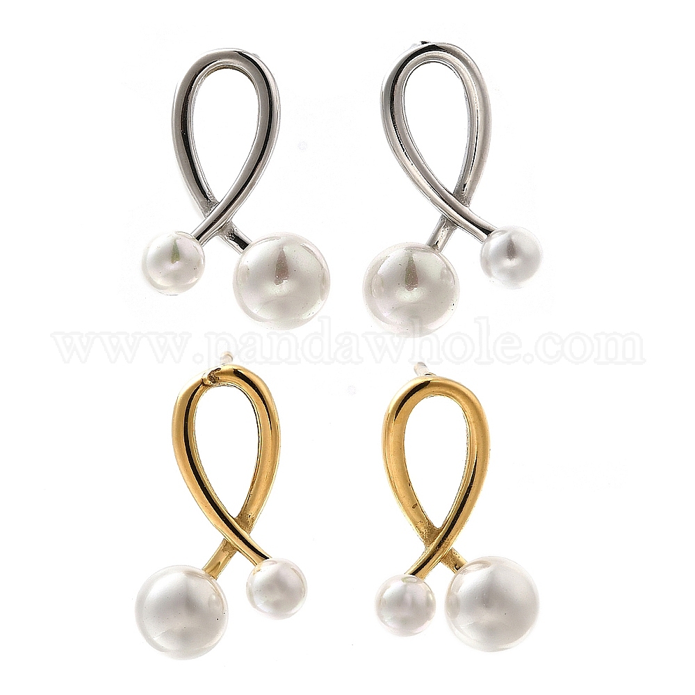 304 из нержавеющей стали серьги, с стеклянные бусы, круглые