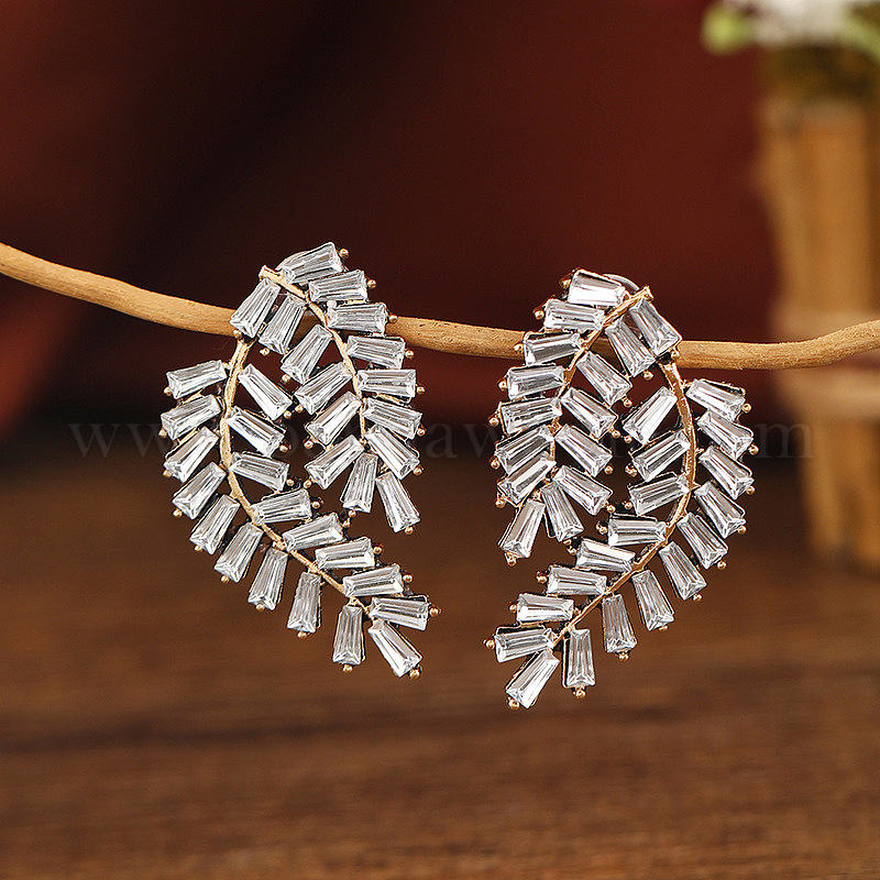 Серьги-гвоздики из сплава в форме листа, с четким кубического циркония