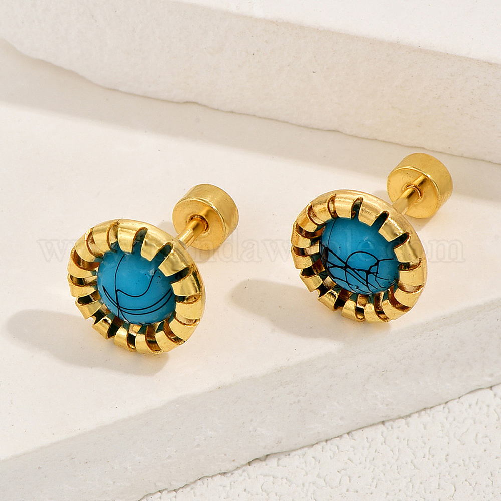 Плоские круглые серьги-гвоздики из нержавеющей стали, с синтетическими бирюзовый