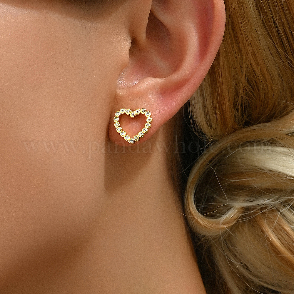 Элегантные и универсальные серьги-гвоздики из латуни в форме сердца, с четким кубического циркония