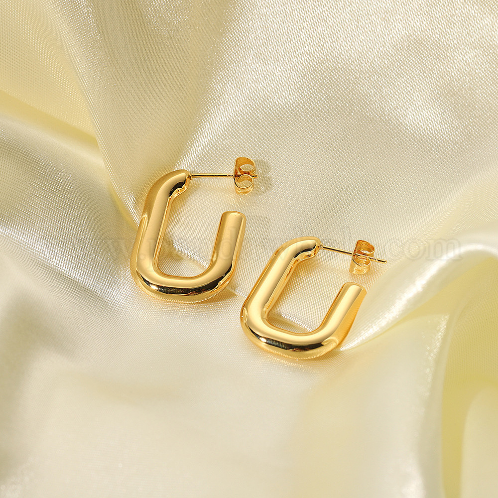 • Настоящее золото 18K Простые овальные 304 серьги-гвоздики из нержавеющей стали, реальный 18 k позолоченный, 24x18x5 мм