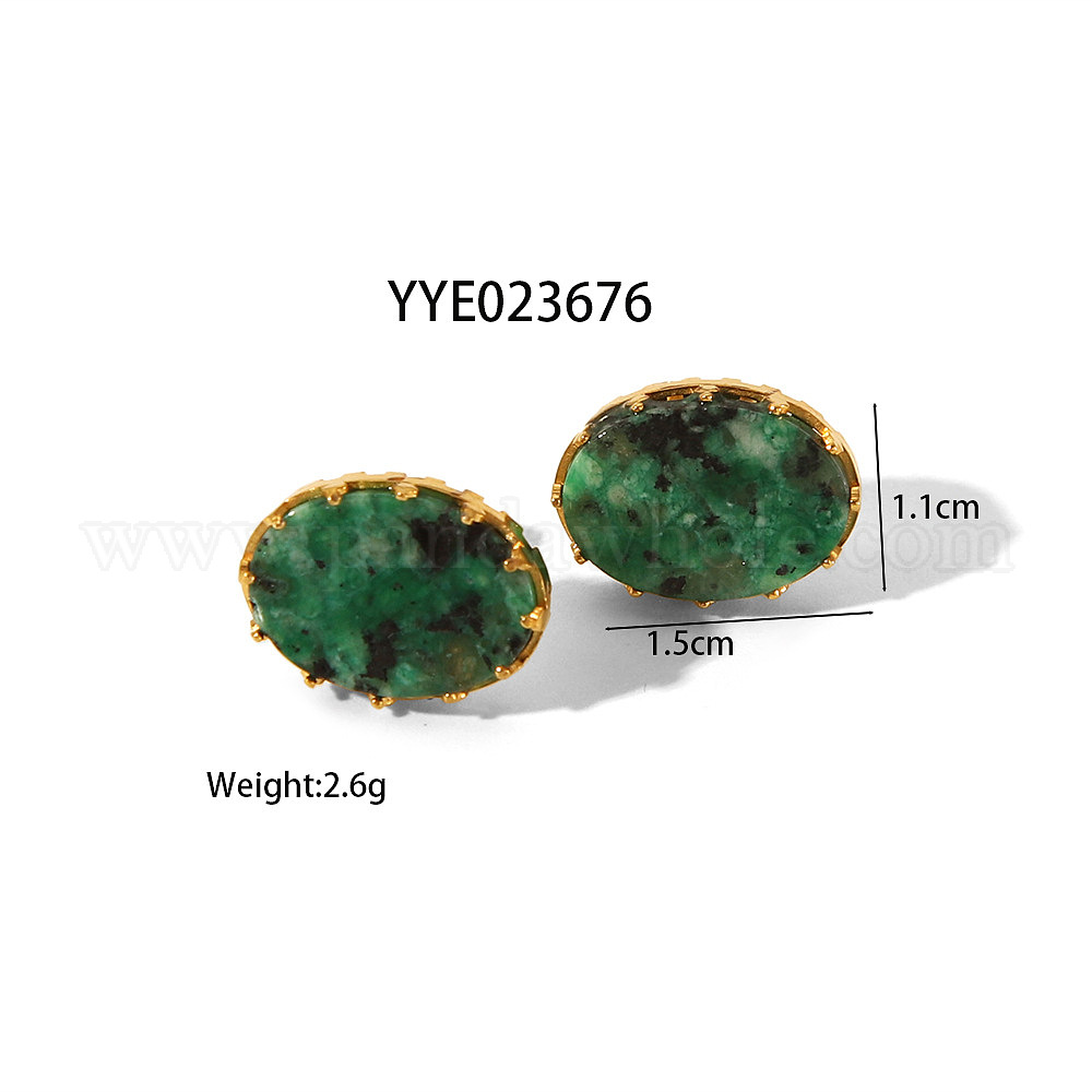 • Настоящее золото 18K Простые модные овальные серьги-гвоздики из натуральных драгоценных камней, 304 серьги нержавеющей стали, реальный 18 k позолоченный, 11x15 мм