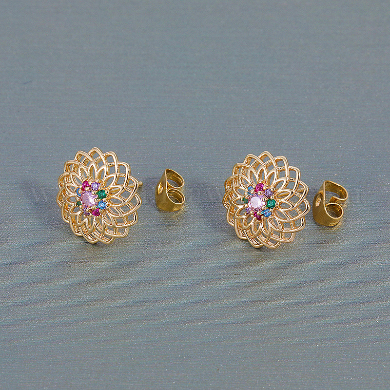Полые латунные серьги-гвоздики в форме цветка, с кубического циркония
