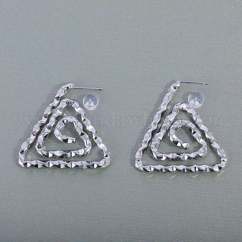• Платина Серьги-гвоздики из латуни с треугольным спиральным узором, платина, 33x33.8 мм