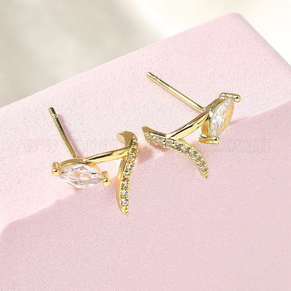 • Золотой Серьги-гвоздики из латуни с конским глазом и прозрачным кубическим цирконием, без кадмия и без свинца, долговечный, золотые, 12x9 мм