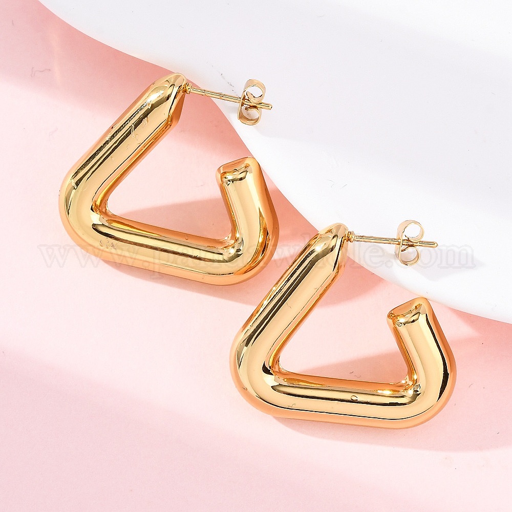 • Золотой Треугольник 304 из нержавеющей стали серьги, золотые, 26.5x29x6 мм