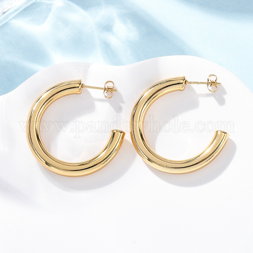 • Золотой C-образные 304 серьги-гвоздики из нержавеющей стали, золотые, 30.5x5 мм