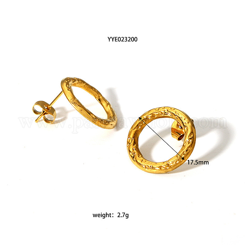 • Настоящее золото 18K Винтажные 304 серьги-гвоздики из нержавеющей стали для женщин, реальный 18 k позолоченный, 17.5 мм