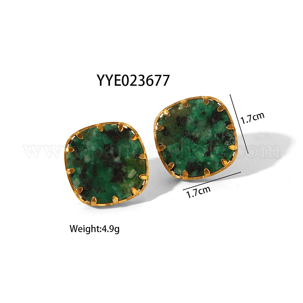 • Золотой Серьги из ромбовидной синтетической бирюзы, Серьги шпилька нержавеющая сталь, золотые, 17x17 мм