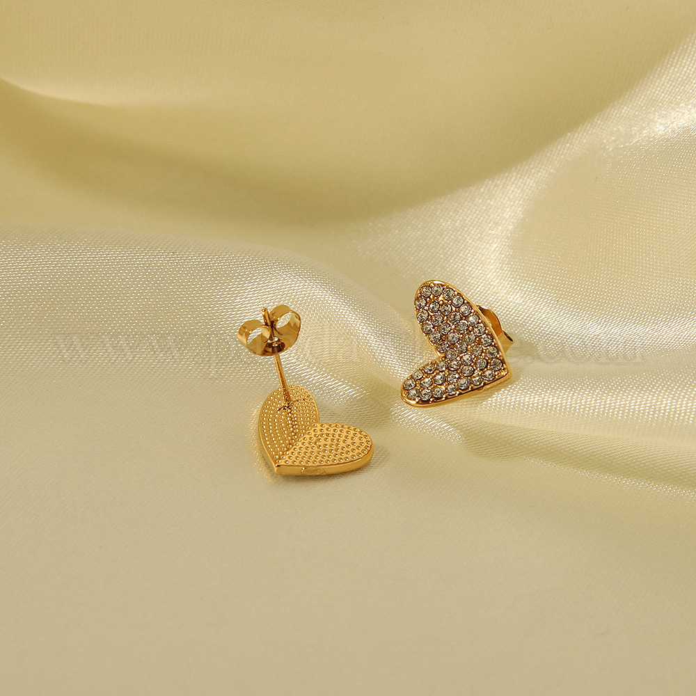 Серьги-гвоздики в форме сердца из нержавеющей стали со стразами для женщин, реальный 18 k позолоченный (031CAC)