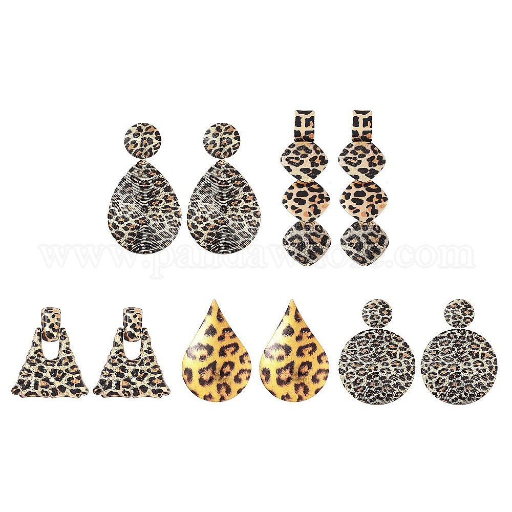Серьги-гвоздики из сплава с леопардовым принтом, золотые
