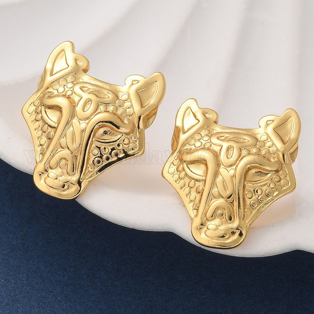 304 серьги-гвоздики из нержавеющей стали для женщин, ионное покрытие (ip), волк