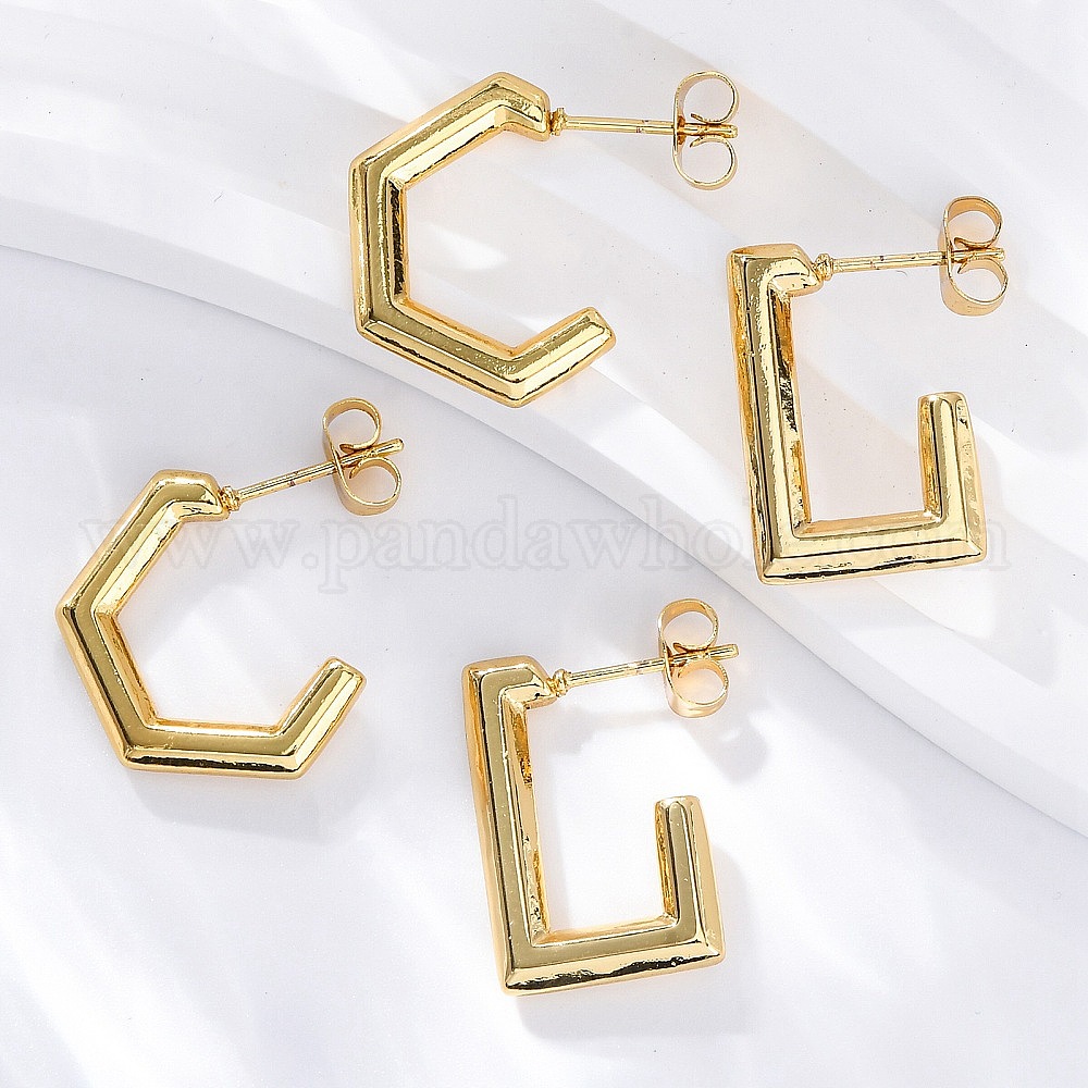 • Шестиугольник 304 серьги-гвоздики из нержавеющей стали для женщин, ионное покрытие (ip), реальный 18 k позолоченный, шестиугольник, 18.5x12x2.5 мм