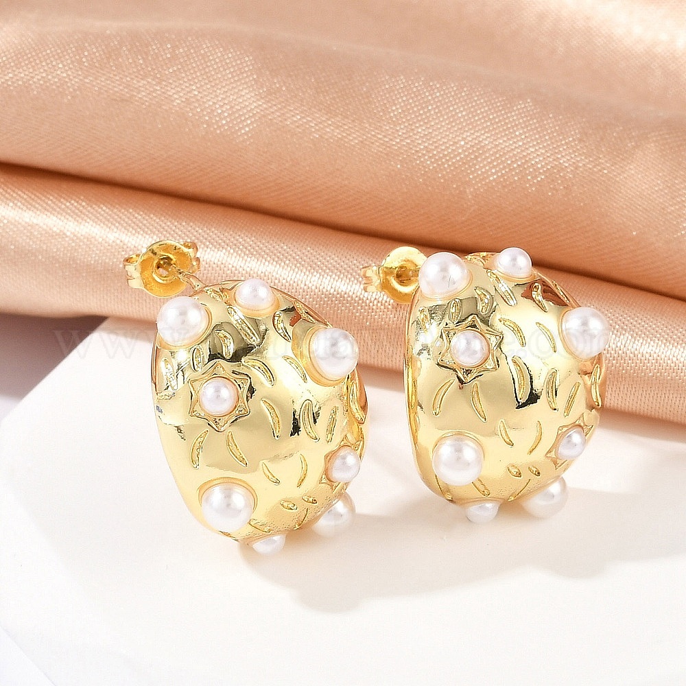 Овальные серьги-гвоздики из латуни, с жемчужными бусинами из абс-пластика, без свинца и без кадмия, долговечный