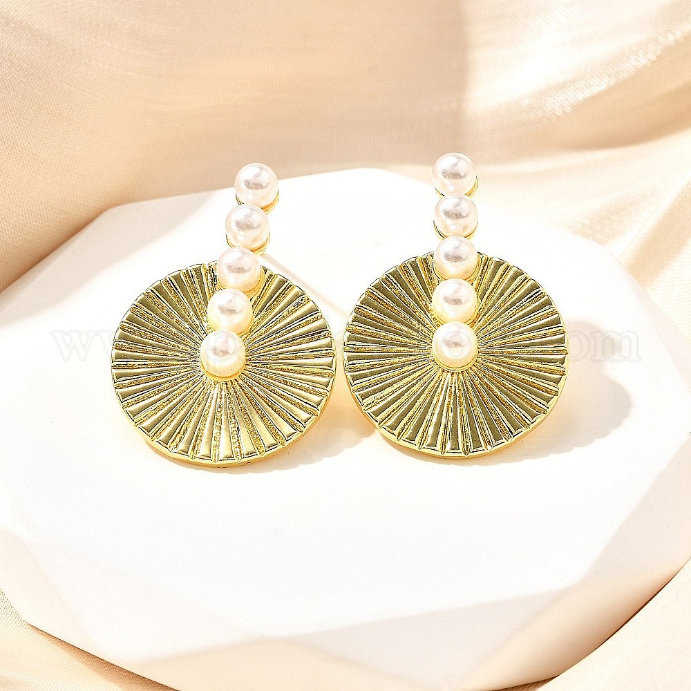 Латунные качают серьги, с abs имитационными жемчужными бусинами , долговечный, без свинца и без кадмия, плоско-круглые