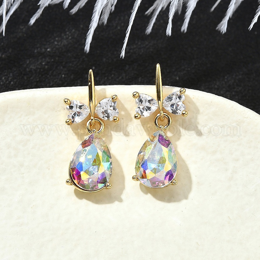 Серьги-гвоздики из латуни в форме каплевидной формы, с прозрачным кубическим цирконием и стеклом, без кадмия и без свинца, долговечный, стойки покрытие