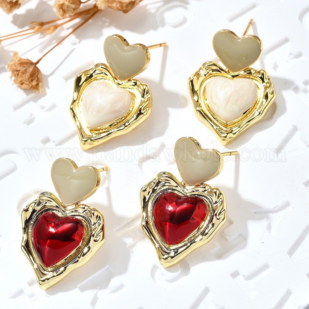 Серьги-гвоздики с эмалью в форме сердца из латуни, без кадмия и без свинца, долговечный, стойки покрытие, реальный 18 k позолоченный