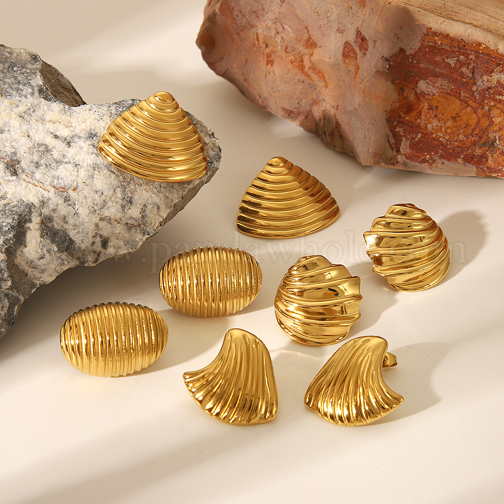 Серьги-гвоздики из нержавеющей стали с геометрической текстурой и неровной формой, золотые