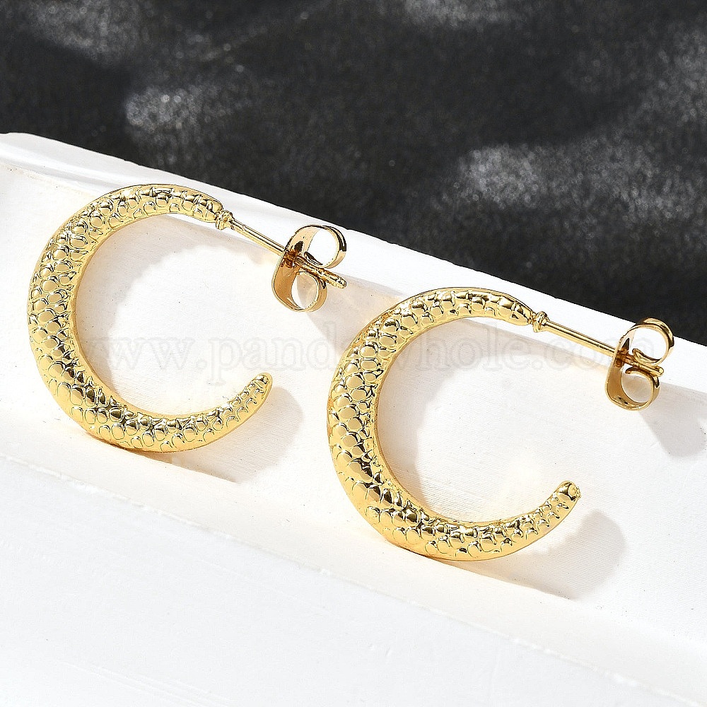 • Настоящее золото 18K 304 из нержавеющей стали серьги, ионное покрытие (ip), c-образный, реальный 18 k позолоченный, 24x23x3 мм