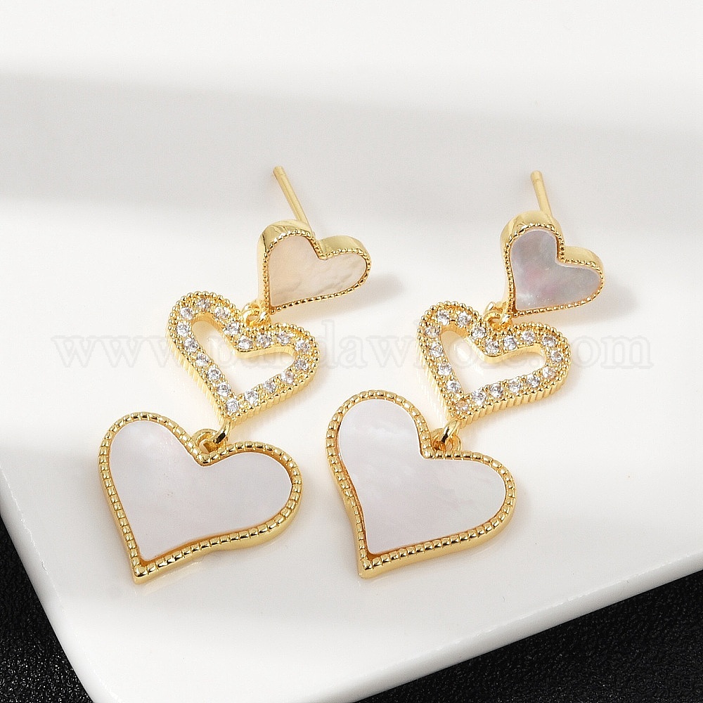 • Настоящее золото 18K Серьги-гвоздики из латунного микро-паве, с оболочкой, без свинца и без кадмия, долговечный, сердце, реальный 18 k позолоченный, 33x15 мм