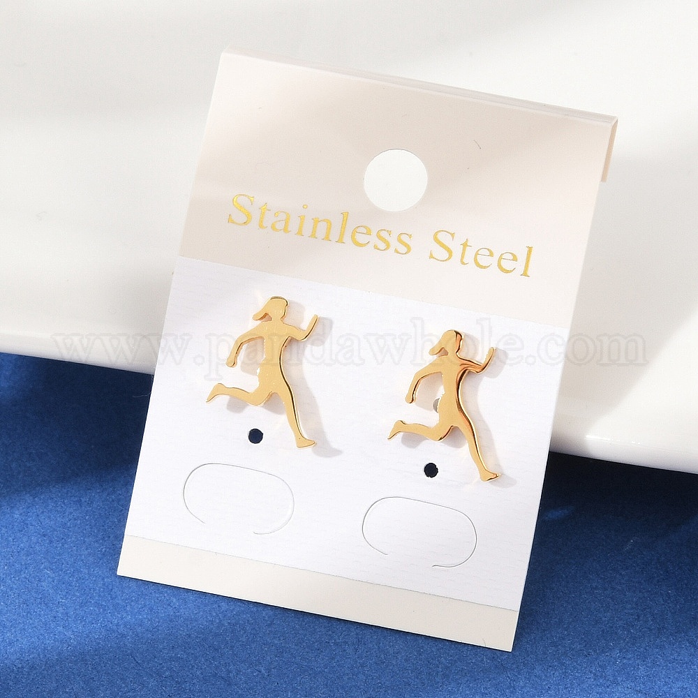 • Золотой 304 серьги-гвоздики из нержавеющей стали для женщин, ионное покрытие (ip), человек, золотые, 14.5x10.5 мм