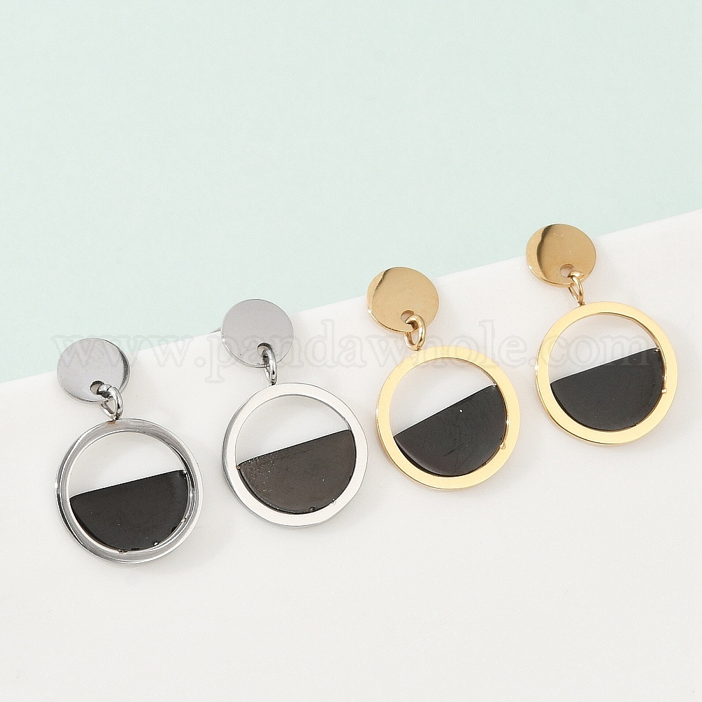 304 серьги-гвоздики из пластика и нержавеющей стали, плоско-круглые, ионное покрытие (ip)