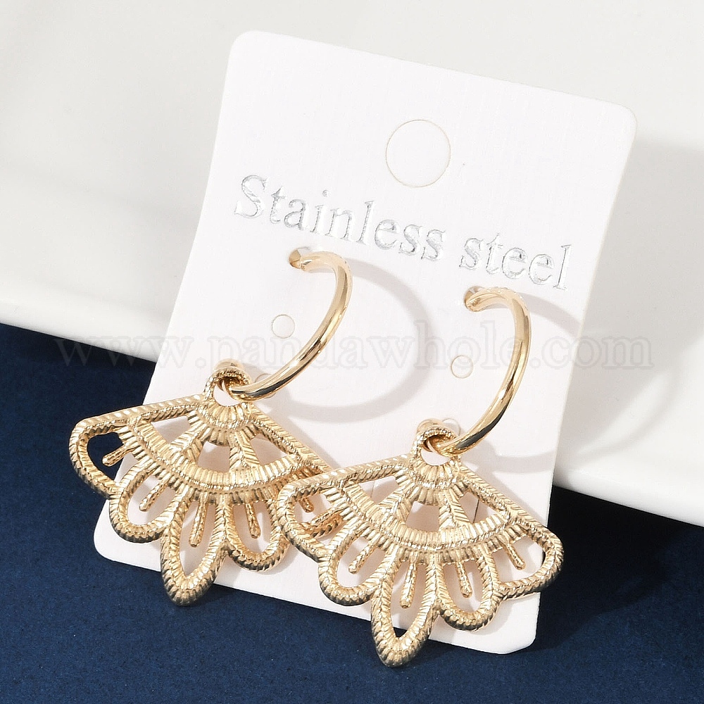 • Золотой 304 из нержавеющей стали серьги, вентилятор, ионное покрытие (ip), золотые, 34x25 мм