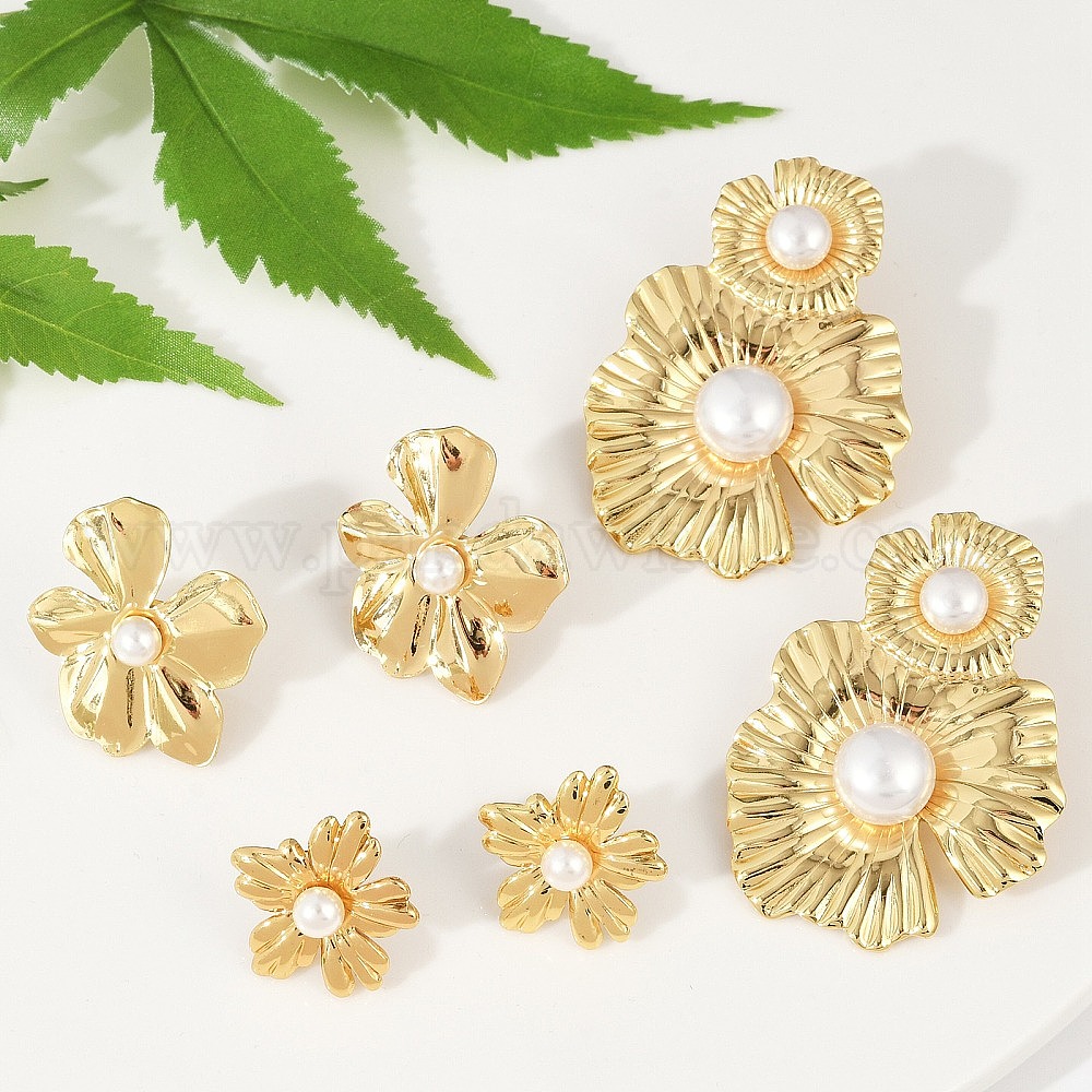 304 серьги-гвоздики из нержавеющей стали и АБС-пластика с жемчугом для женщин, ионное покрытие (ip), цветок