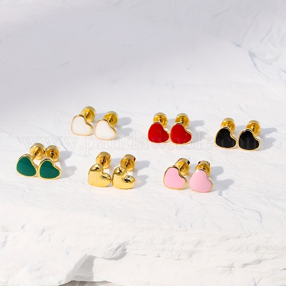 201 серьги-гвоздики в форме сердца из нержавеющей стали, золотые