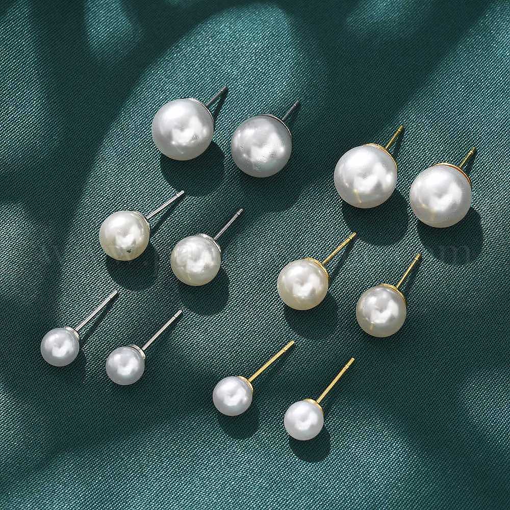 Серьги-гвоздики из искусственного жемчуга из латуни и АБС-пластика, без кадмия и без свинца, стойки покрытие, круглые