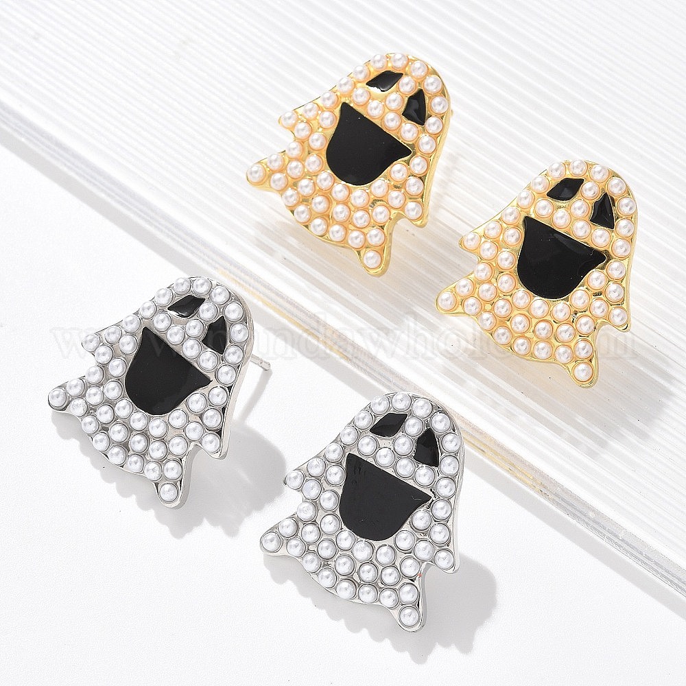 Серьги-гвоздики из искусственного жемчуга из латуни и АБС-пластика, без кадмия и без свинца, стойки покрытие, с эмалью, призрак