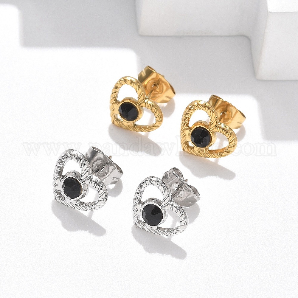 304 из нержавеющей стали серьги, со стразами, ионное покрытие (ip), сердце