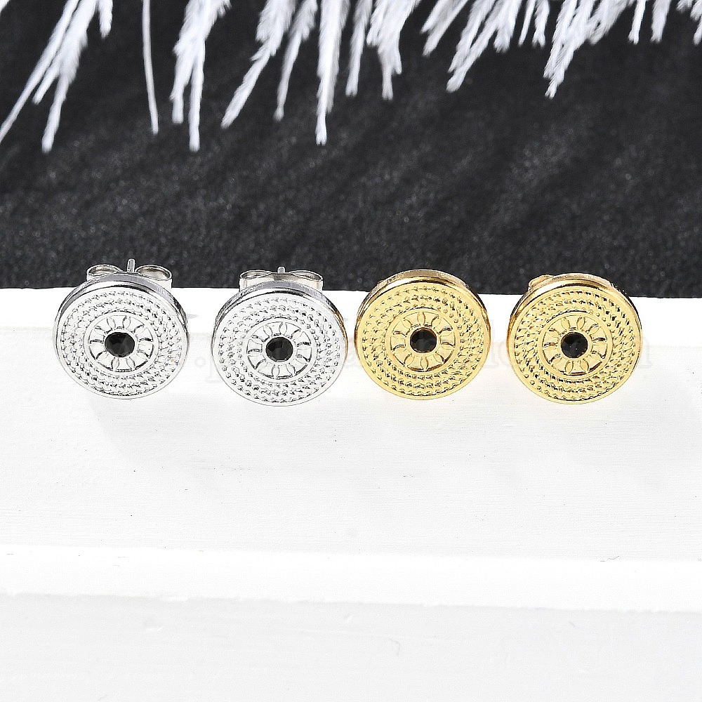 304 из нержавеющей стали серьги, со стразами, ионное покрытие (ip), плоско-круглые