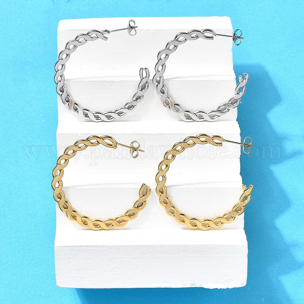 • Настоящее золото 18K 304 из нержавеющей стали серьги, ионное покрытие (ip), c-образный, цепочка-оберег, реальный 18 k позолоченный, 40x41x1.5 мм