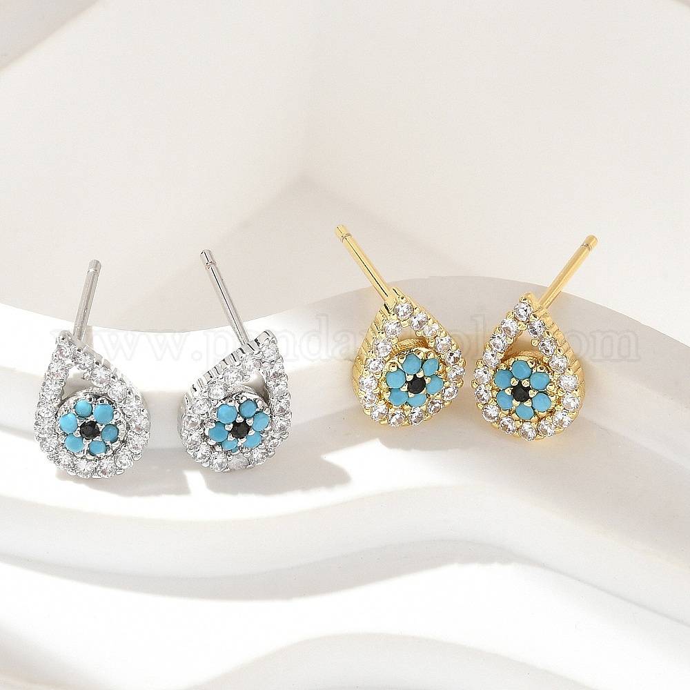 Серьги-гвоздики из латунного микро-паве, стойки покрытие, без свинца и без кадмия, слеза