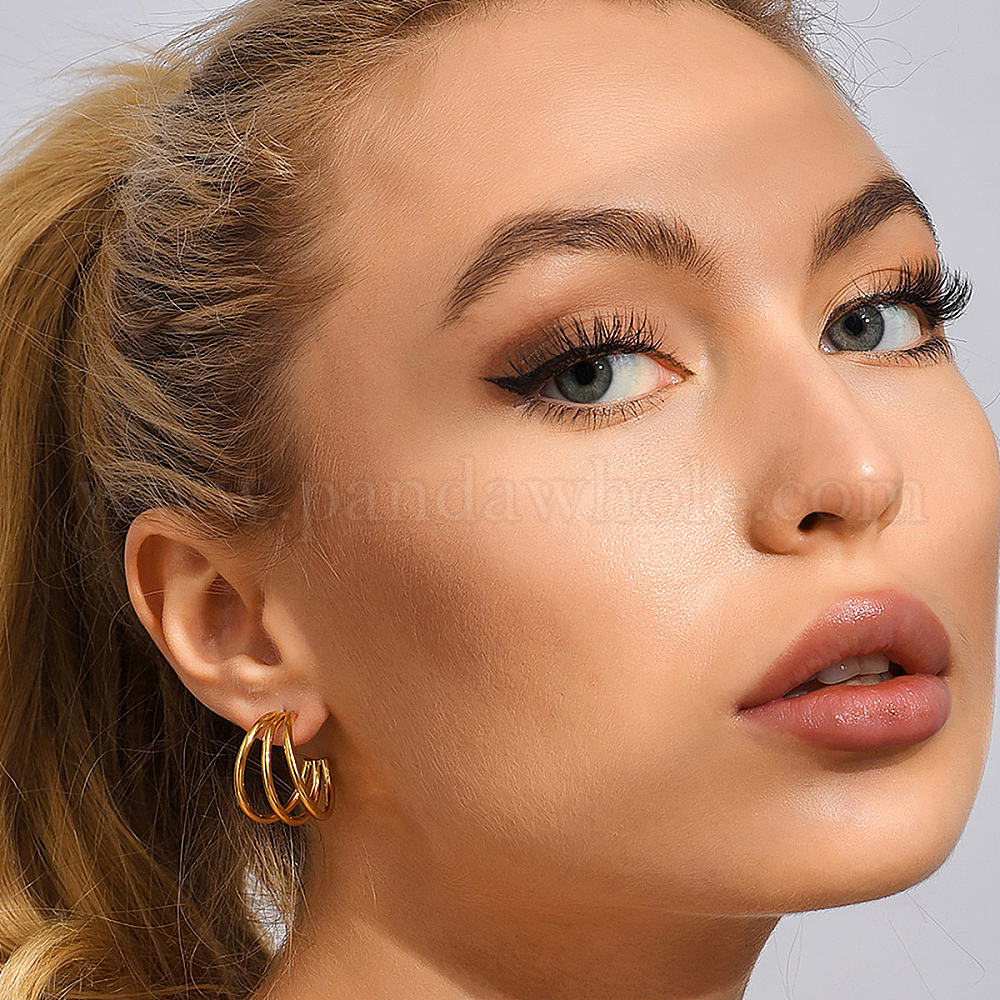 • Золотой Ретро тройные серьги-гвоздики в форме буквы С 201 из нержавеющей стали, золотые, 22x22 мм