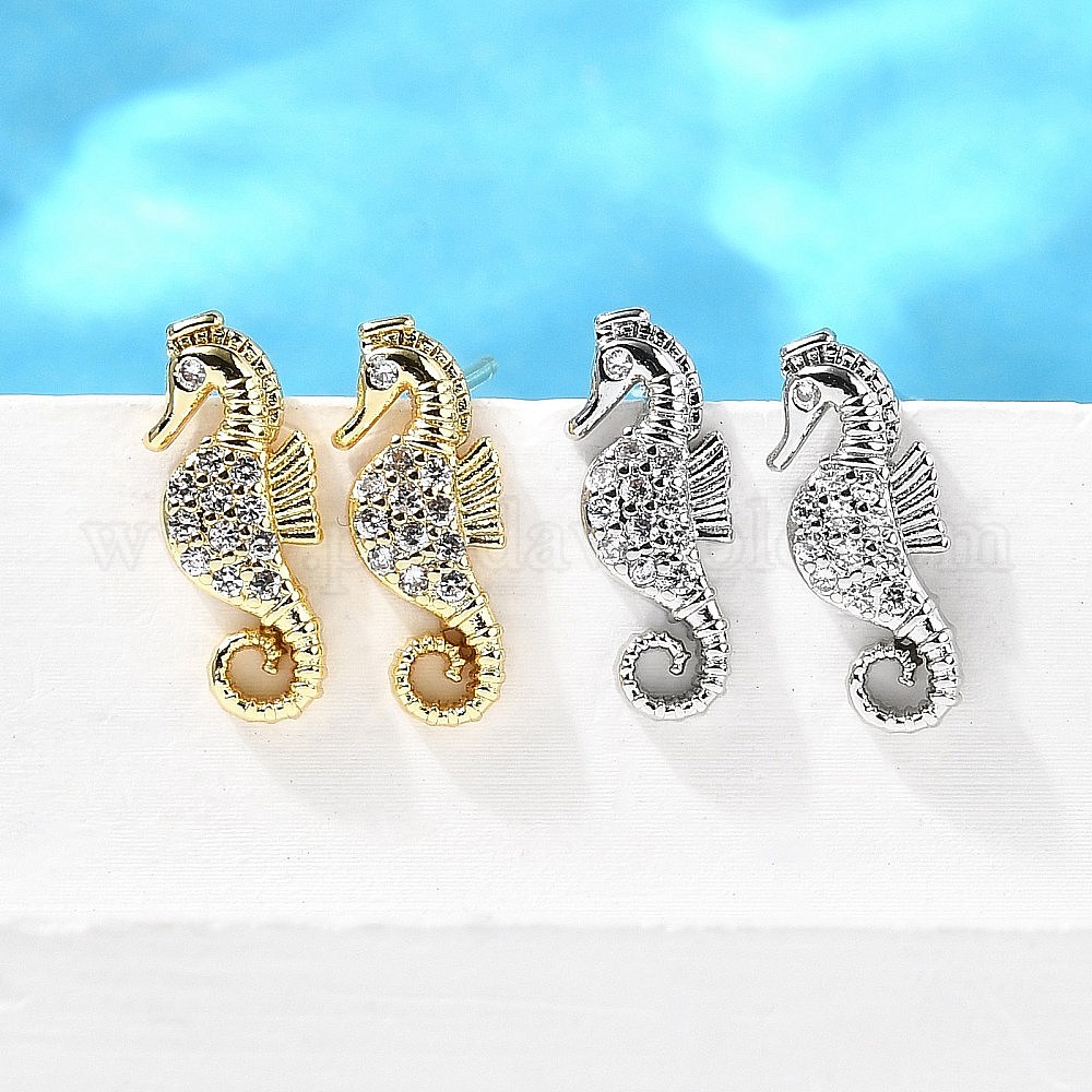 Серьги-гвоздики из латуни с микропаве из кубического циркония в форме морского конька, долговечный, без свинца и без кадмия, стойки покрытие