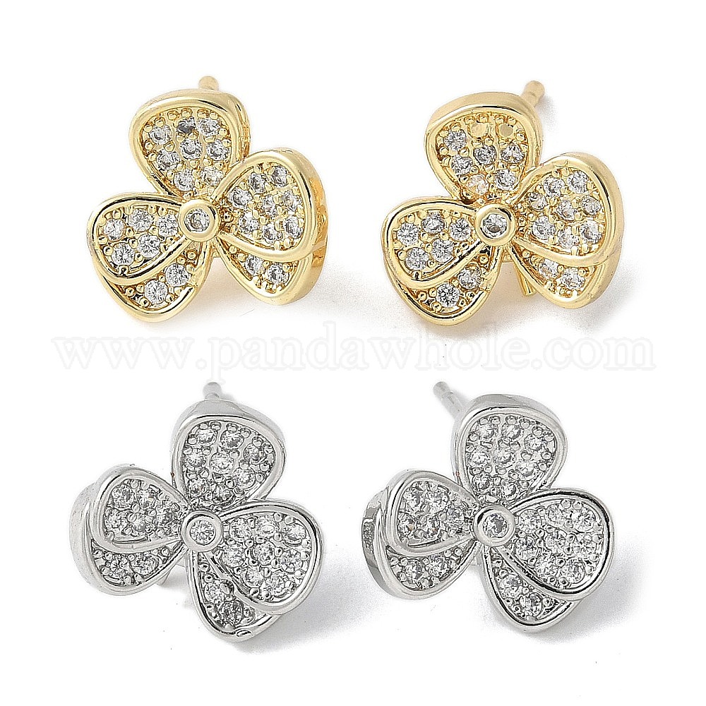 Серьги-гвоздики из латуни с микропрозрачным кубическим цирконием в форме клевера, долговечный, без свинца и без кадмия (0322K3)